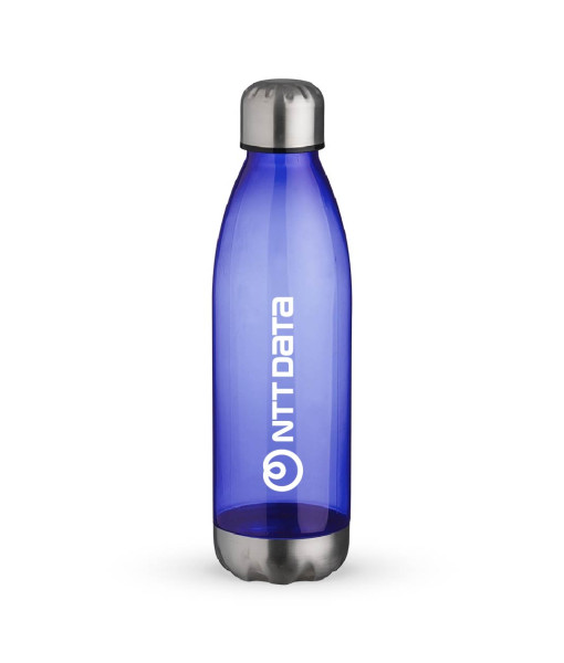 Garrafa plástica Azul 700ml translúcida, possui tampa e base em alumínio...